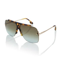Angular detailing abounds on these sunglasses from Victoria Beckham. A new take on the tried-and-true metal aviator silhouette, this golden-framed pair has protective ZEISS lenses, and is exaggerated with a tortoiseshell-effect acetate panel running over the nose bridge and brow.
