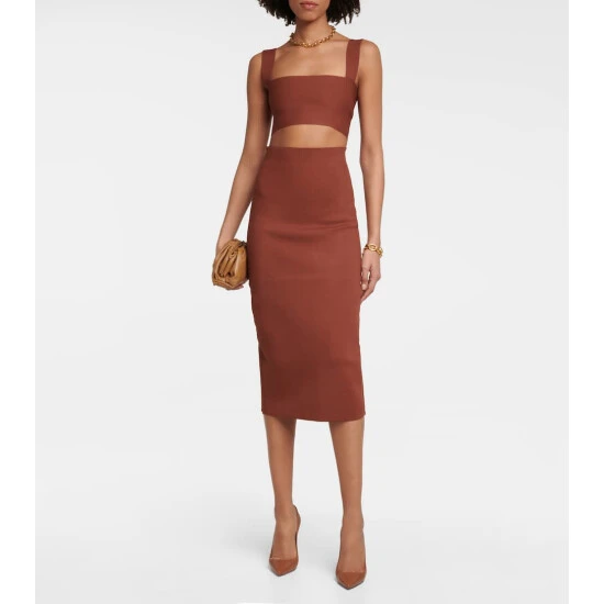 This timeless pencil skirt from Victoria Beckham sits high at the waist, and falls to a midi-length silhouette.
